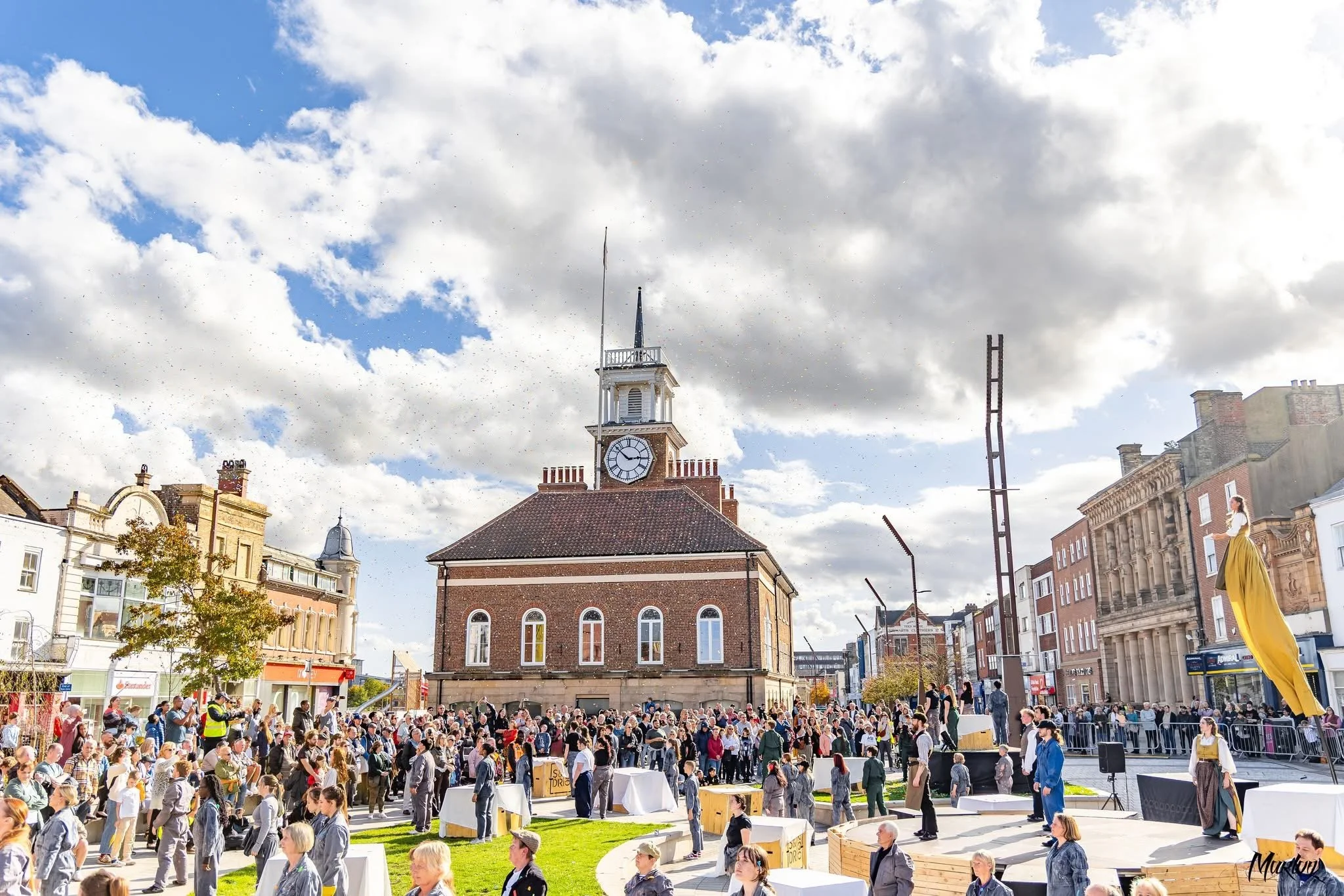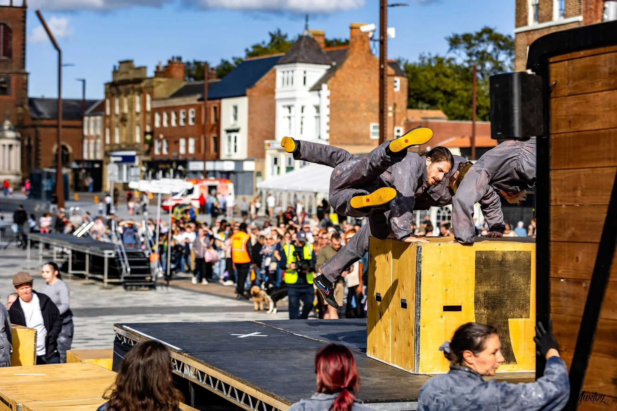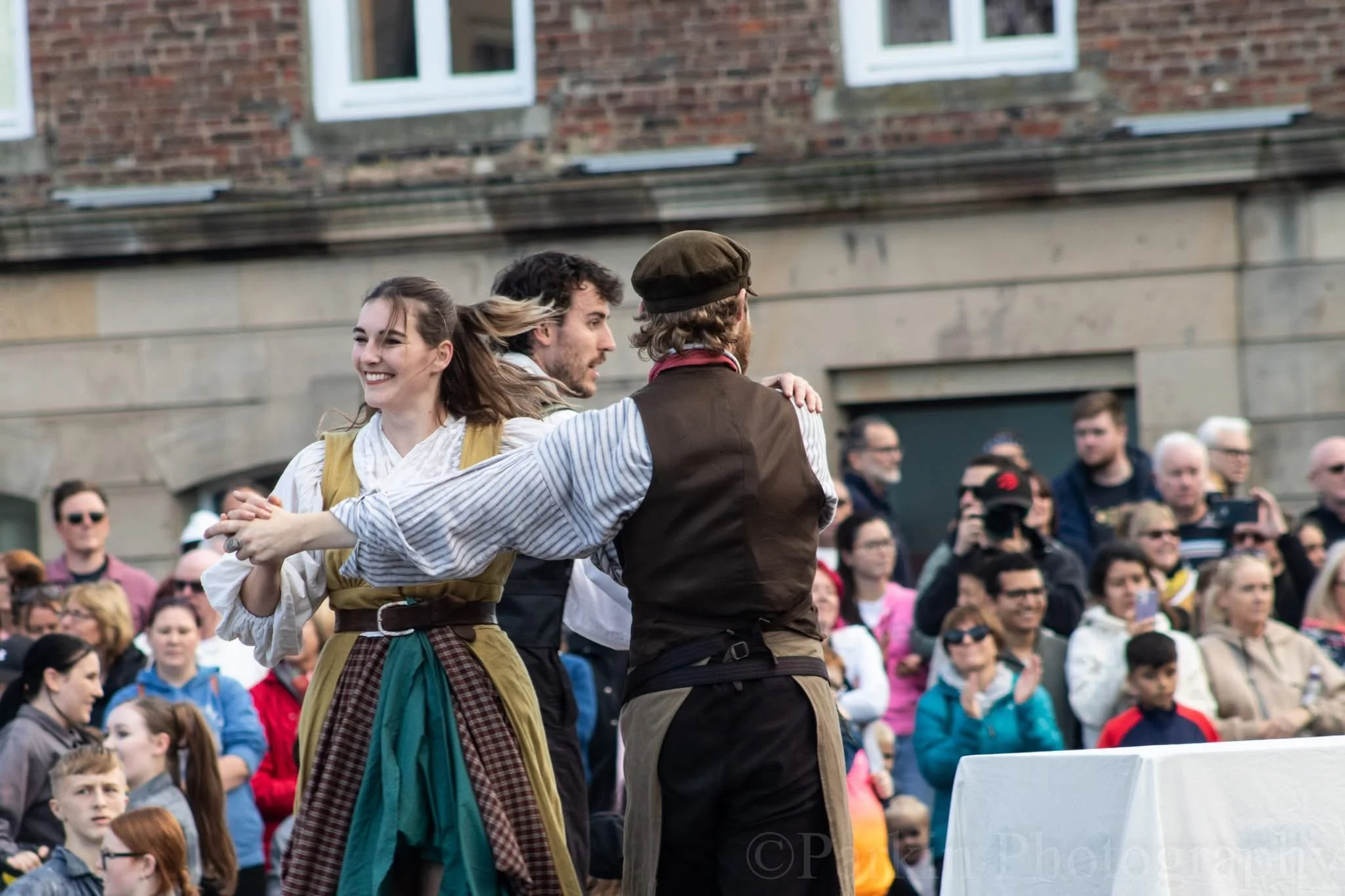 The production was performed twice on Stockton High Street, with the town’s iconic Stockton Flyer as a centrepiece, and again in Shildon’s Hackworth Park as part of the Anniversary Picnic celebrations. Across all performances, STEAM drew huge crowds and brought history vividly to life.